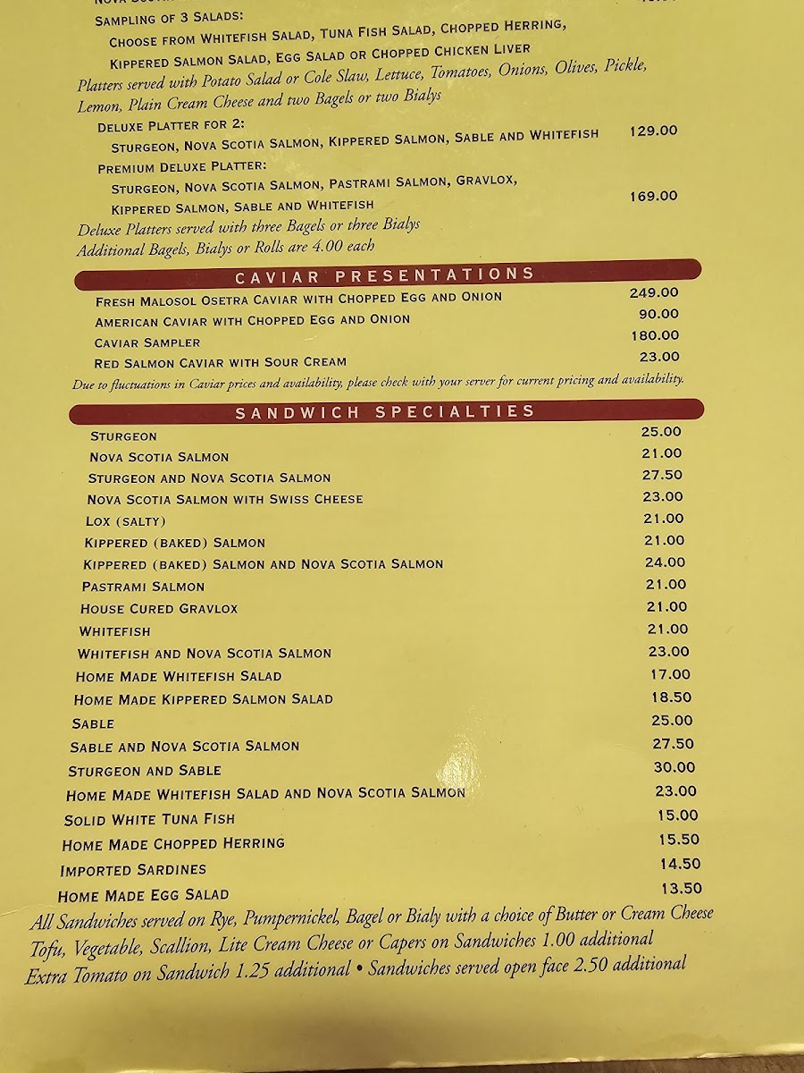 - Sandwiches: Try classic offerings such as the Sturgeon or Nova Scotia Salmon sandwiches, each bursting with flavor.